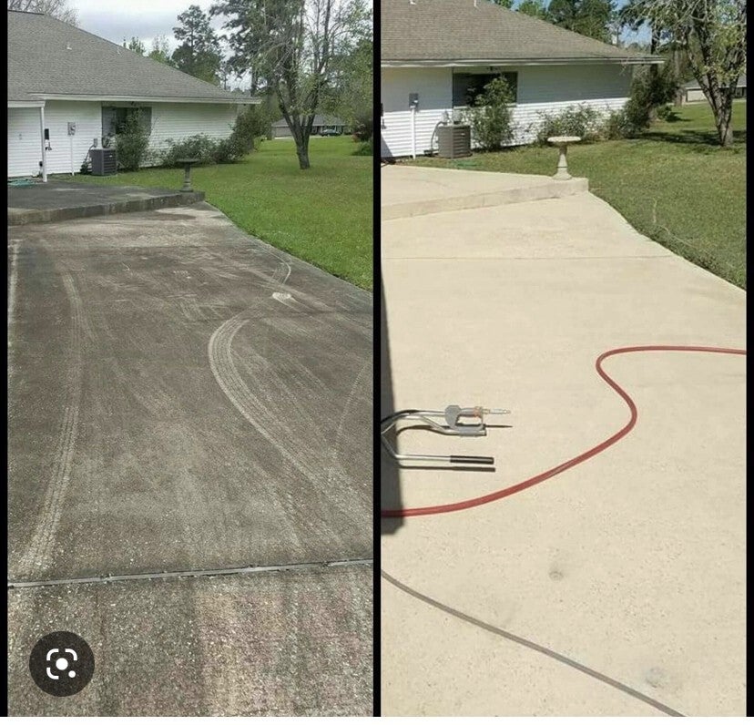 This project involved deep cleaning a heavily stained concrete driveway. Years of dirt, oil, and grime were removed to reveal a like-new surface, drastically enhancing the home's curb appeal. The client was amazed by how bright and clean their driveway looked, transforming the entire entrance to their property.