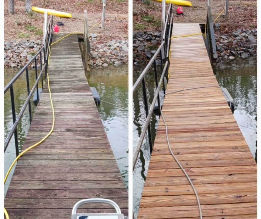 Our team meticulously cleaned this weathered wooden fence and deck, removing built-up dirt and graying. The restoration brought back the natural beauty of the wood, making the outdoor living space inviting and enjoyable again. This project truly highlighted our ability to restore neglected surfaces with care and precision.